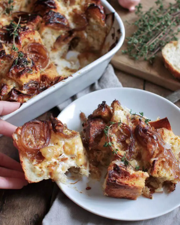 Made this Caramelized Onion Gruyère Strata? Tell me how it went in the comments below and don’t forget to snap a photo of that bubbly cheese crown for Instagram!