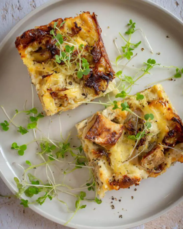 - For deeper flavor, add 115 g (4 oz) crispy bacon or pancetta between the layers along with the onion jam. The salty, smoky notes make this even more addictive.