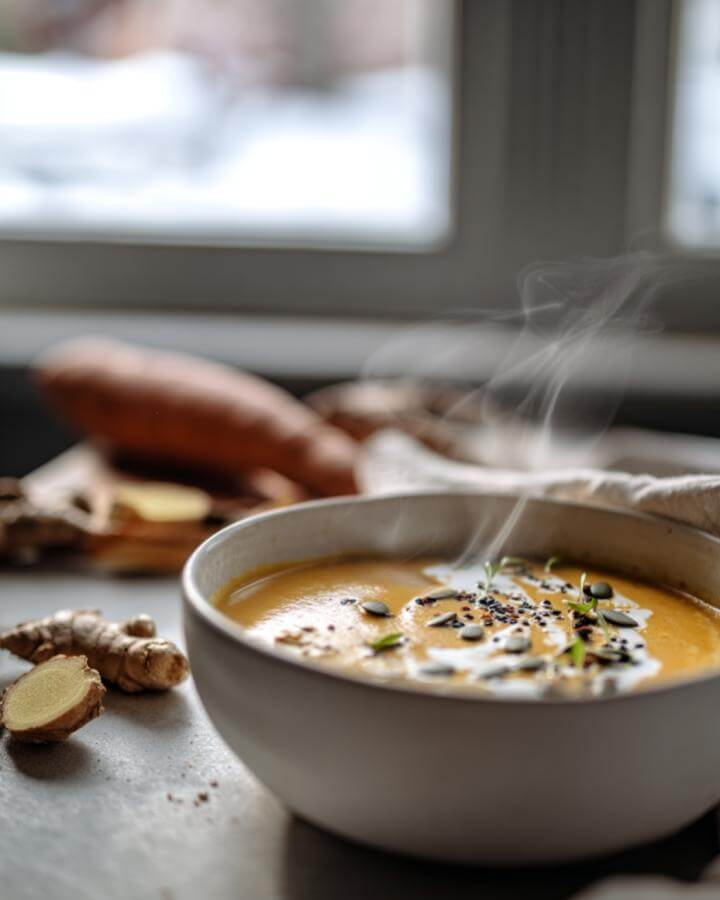 I started making this soup on repeat after a particularly dreary January, and now it’s my go-to whenever I need comfort that doesn’t feel heavy. The ginger-garlic-onion trio builds an aromatic base that makes the whole kitchen smell incredible, and I love serving it with a dramatic swirl of coconut cream and a fistful of toasted pumpkin seeds for crunch.